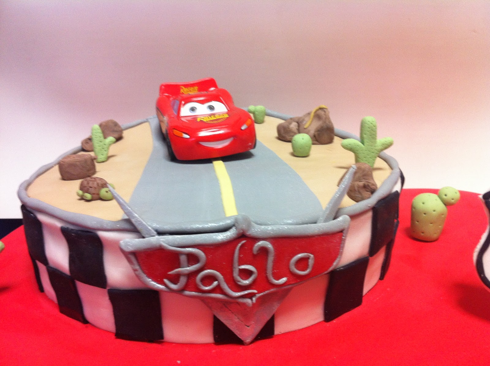 Como veis este fin de semana ha sido movidito, en cuanto a 'dulces' se refiere... Esta es la tercera y ultima tarta de estos 2 dias... Esta vez Ester repite y me pide una tarta para su niño de Rayo McQueen. Gracias Ester!! ;)